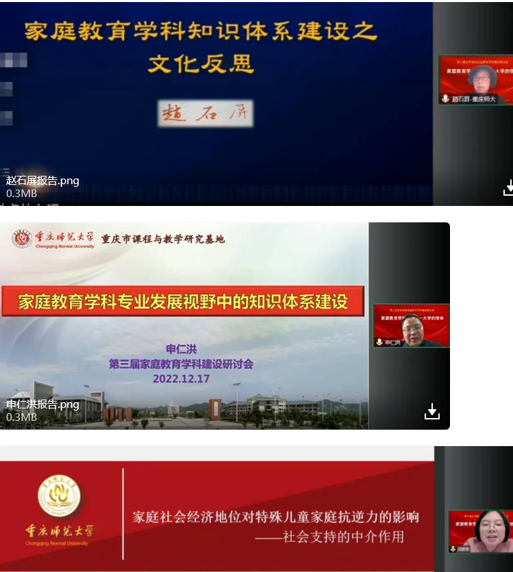 申仁洪教授在第一分论坛作了《家庭教育学科专业发展视野中的知识体系建设》的主题报告,申教授以政策与法律为依据,对教育部第五轮学科评估从人才培养质量、师资队伍与资源、科学研究水平、社会服务与学科简介等层面进行分析后,根据家庭教育学科发展的核心问题提出了人才培养本位的家庭教育学科建设,并在家庭教育知识体系的跨学科性和家庭教育知识场域的复杂性的基础上,以人才培养为基本载体,搭建了家庭教育专业建设所需的知识体系,为高校家庭教育学科建设提供了发展的思路。18日上午,申仁洪教授主持了第三论坛“青年学者家庭教育论坛”。
