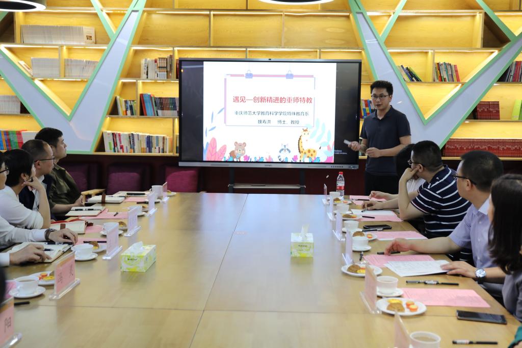 向株洲特校输送了多名优秀毕业生,为株洲特殊教育事业做出了积极的贡献。魏寿洪教授就重师特殊教育专业的文化精神、发展历程、课程设置、人才培养等做了全面的介绍,双方围绕人才培养、战略合作进行了深入的交流沟通。