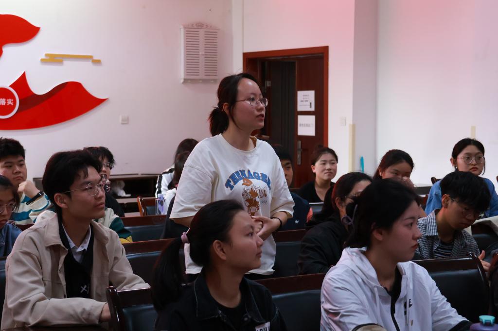 接着,团员代表王佳和冉竺玉先后谈了今天的收获。王佳表示,两位学姐的发言对自己启发很大,日后会做好规划,深耕不缀,笃行致远;冉竺玉表示两位学姐不服输的精神和坚毅的精神品质才使得她们取得今日众人瞩目的成就,会以二人为榜样,不忘初心,砥砺前行。