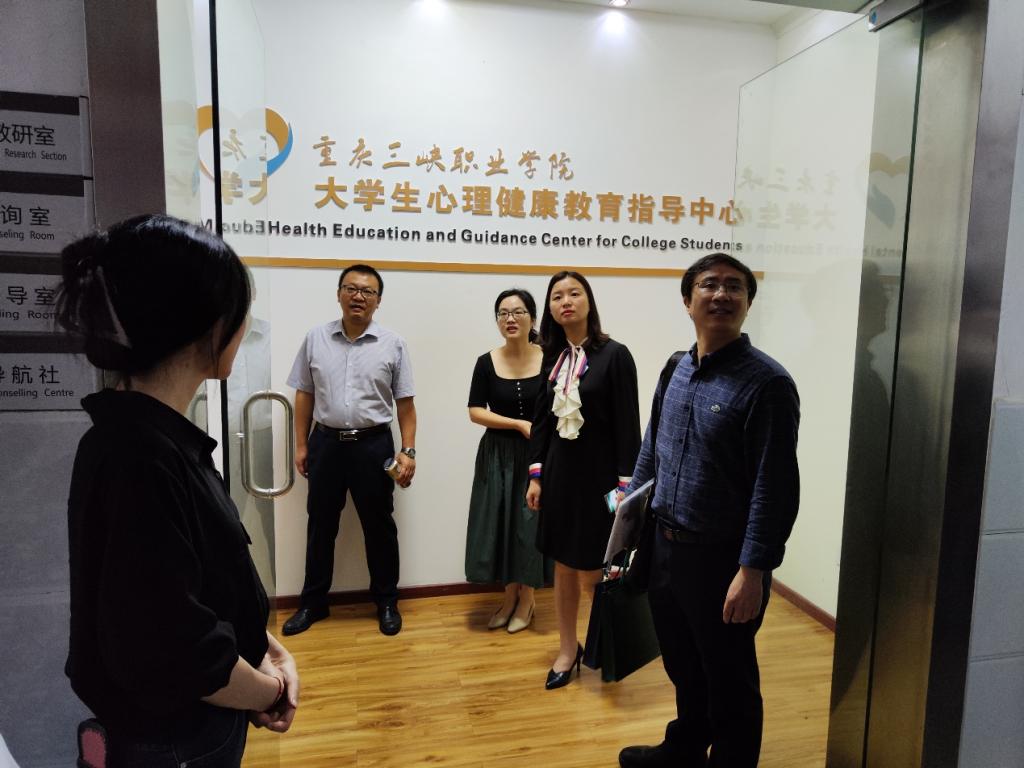 。在学生处陶毅处长、彭钦、卢文凤两位副处长的陪同下,首先参观了大学生心理健康教育指导中心,实地走访了心理咨询室、沙盘游戏室、音乐放松室、团体辅导室等专业功能室,详细了解中心建设,实地考察实习生的工作情况。
