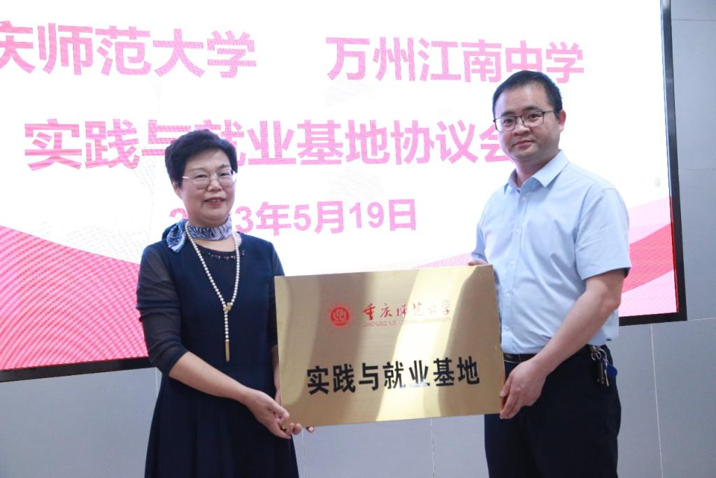 随后,实践与就业基地签约授牌仪式在江南中学图书馆307室举行。江南中学党委副书记、校长向林,党委委员、副校长吴宏及相关科室负责人参加活动。向林校长代表江南中学致欢迎辞,回顾了江南中学的办学历史、办学规模和办学质量;强调足球比赛比分
