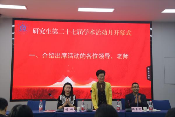 院长朱桂琴、副院长魏勇刚、研究生导师代表胡娜老师以及研究生代表参与本次开幕式。朱桂琴院长致开幕词,针对本届研究生学术活动月主题“勘极成知,研行致远”,以陶行知先生的“教学做合一”理念勉励大家勤学善思躬行实践。魏勇刚副院长为大家介绍了学术活动月相关准备工作,他详细说明了本届学术活动月的活动规划,活动设计的初衷,鼓励大家都能找到自己的兴趣和热爱,展现积极进取的态度和勇于拼搏的精神。导师代表胡娜老师则从研究生学业发展实际出发,鼓励大家在学术活动中充分展示自己,挑战自己,完善自己。