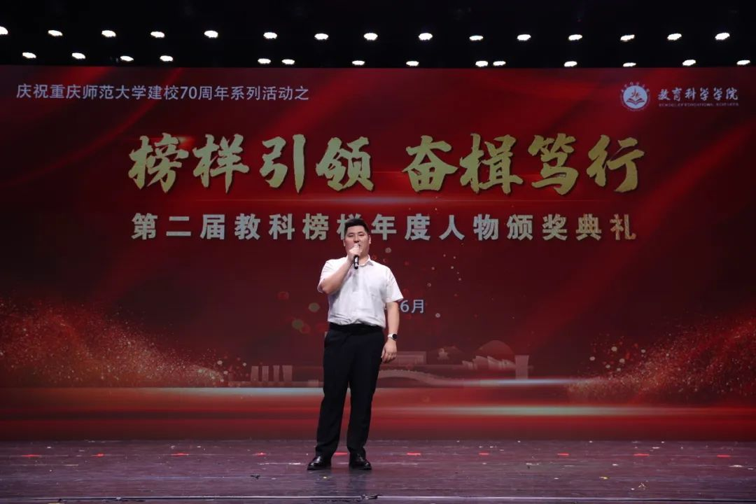 在本届教科榜样年度人物颁奖典礼中,我看到榜样教师们或勤勉敬业,或挺膺担当,展现了无私奉献、心中无我的崇高精神,她们的行为和精神成为指引我们前行的灯塔。孟景老师桃李争妍,矫矫不群,探究前沿,求科学真理;榜样同学更在我们身边,魏子龙同学云程发轫,踵事增华,求学圆梦征程中,他以满腔热忱和坚韧毅力砥志研思,攻读博士续写追梦新篇。
