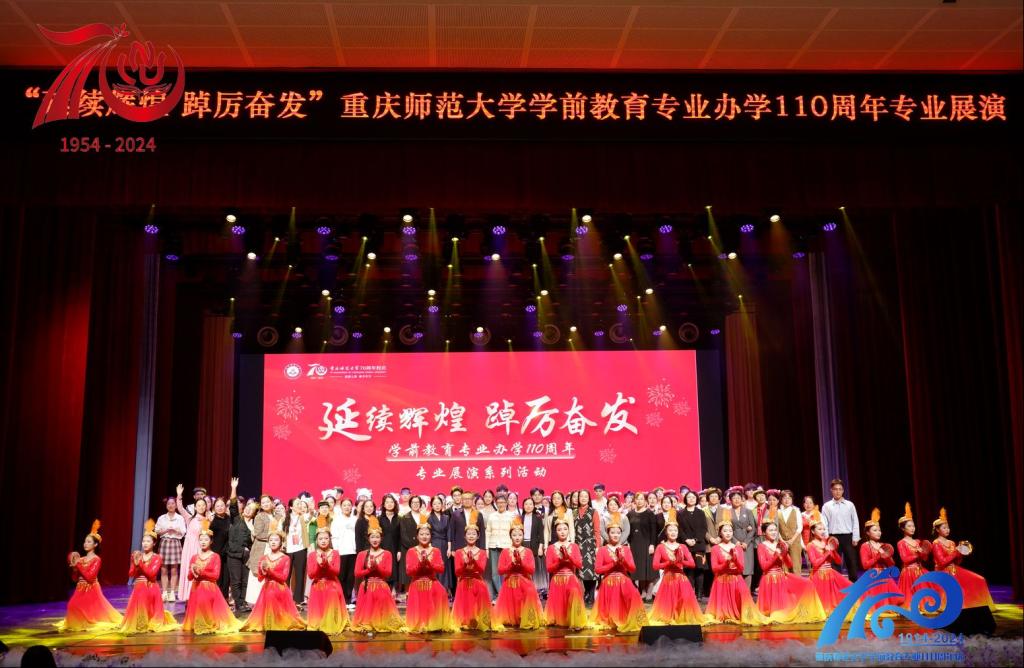 学前教育专业展演在掌声与欢呼声中落下帷幕,这场跨越一个多世纪的庆典,是对过去辉煌成就的回顾与总结,更是对未来的憧憬与展望。110年来,重师学前教育始终秉持着对党的教育事业的高度热爱与执着,培养出了一代又一代优秀的学前教育人才,为西南地区乃至全国的学前教育事业做出了卓越贡献。今日之庆典,是对我们辉煌历史的致敬,更是对未来征程的期许。未来重师学前教育将继续坚定不移地贯彻党和国家教育方针政策,秉持初心,砥砺前行,携手各界共同推动新时代学前教育事业高质量发展。