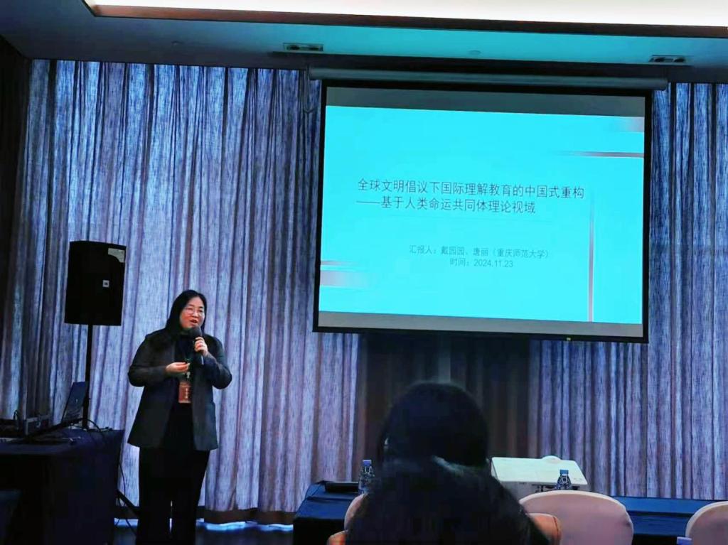 戴园园老师以”全球文明倡议下国际理解教育的中国式重构——基于人类命运共同体理论视域”为题作报告,围绕“全球文明倡议”这一中国特色文明观为主题,反思其为国际理解教育的发展带来的发展空间与困境,并从全球文明倡议的践行展开分析与阐释。