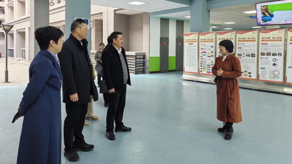 特殊教育系副系主任高晓慧向毛荣志副理事长一行介绍足球比赛比分