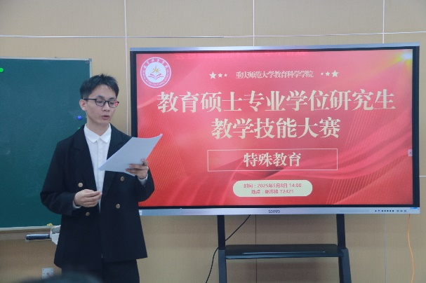 为进一步考查选手的临场应变能力与教学思维,专家组决定以“说课”的形式开展决赛。选手们需根据初赛所讲内容现场准备,进行即兴说课展示。虽然时间紧迫,但选手们凭借扎实的专业基础与清晰的教学思路带来了精彩的说课展示,充分展现出新时代特殊教育研究生所具备的专业能力、教学智慧与职业素养。