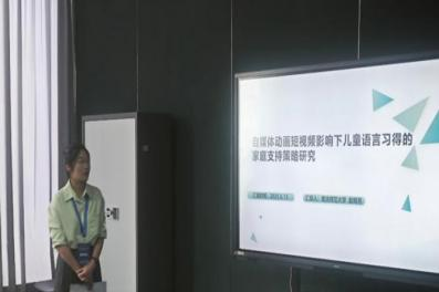 赵明月在分论坛五,以《自媒体动画短视频影响下儿童语言习得的家庭支持策略研究》为题进行了汇报,探讨了自媒体动画短视频如何通过句法结构、词汇选择、语音及互动模式,潜移默化地影响儿童语言习得的过程。