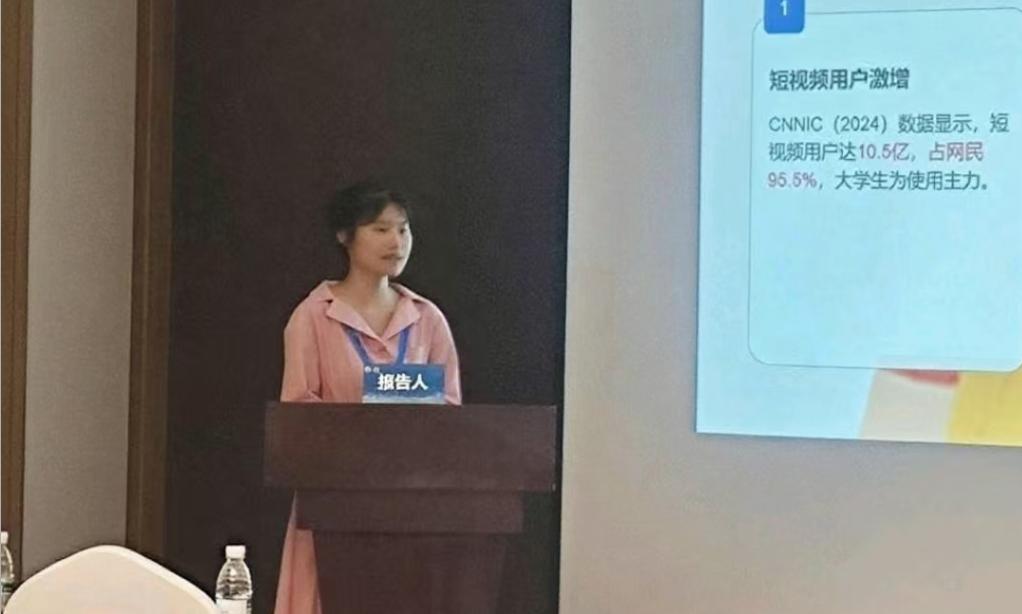 心理学研究生李素莹受邀参与“短视频使用的心理与行为后果”分组口头报告,并以《越焦虑越刷屏?积极心理学视角下就业焦虑与短视频成瘾关系研究》为题作报告。报告围绕刷屏成瘾问题,以提升大学生的自我同情和坚毅水平的创新视角,引发与会者对心理保护机制的深入探讨。
