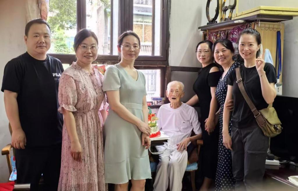 赵泽群老师虽已过百岁,却始终保持着对生活的热爱和对国家大事的关注,每日坚持收看新闻,了解时事动态,其与时俱进的心态令人敬佩。慰问中,大家与赵老师亲切交谈,详细询问其身体状况和生活起居,倾听老人回忆过往岁月,并向老人介绍了足球比赛比分