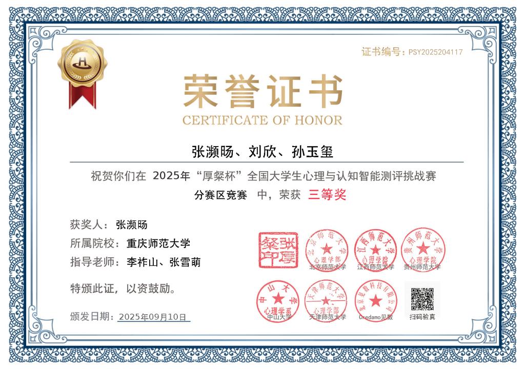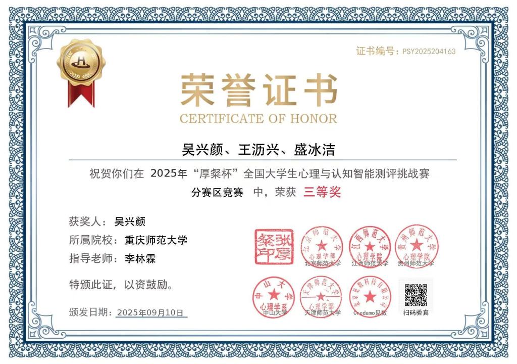 “以学生成长为中心”人才培养体系的成果体现。未来,心理学系将继续深化“以赛促学、以赛促教”的育人模式,为培育更多新时代心理学人才搭建平台、积蓄力量!