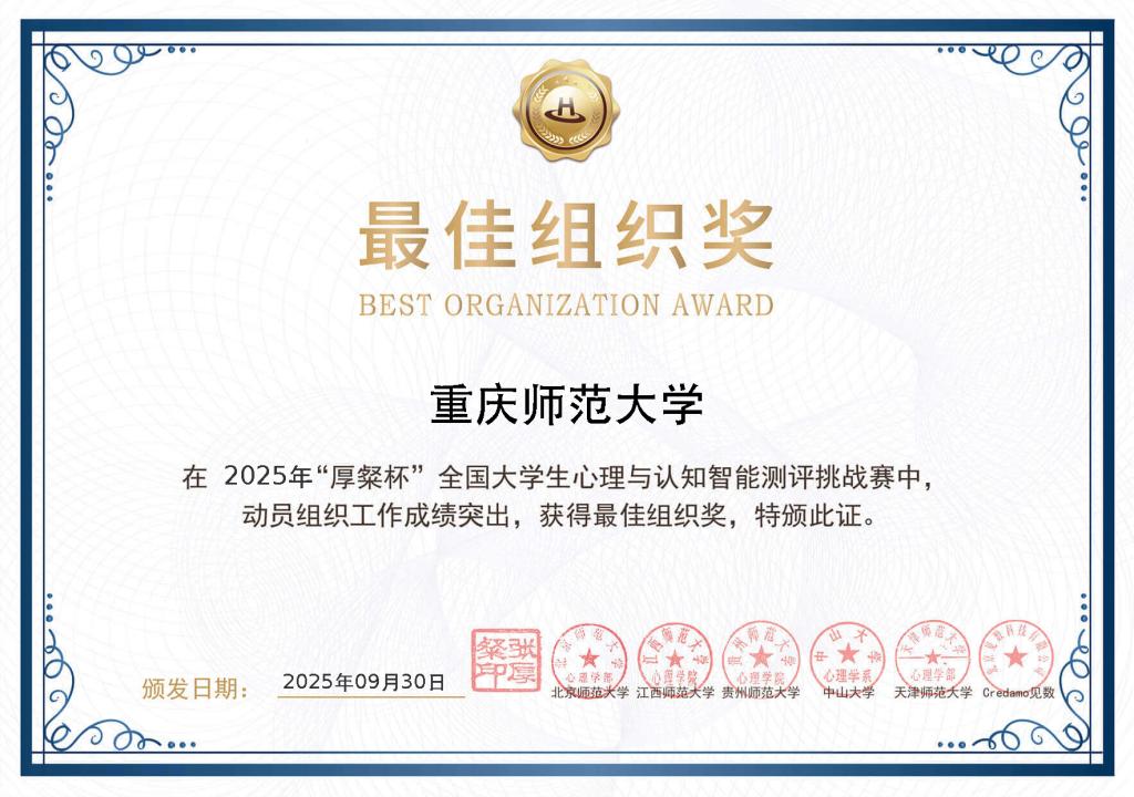 2025年9月27日,首届“厚粲杯”全国大学生心理与认知智能测评挑战赛在北京师范大学圆满落幕。该赛事由全国大学生心理测量赛事联盟创立,代表着该领域新兴的高水平竞技舞台,已成为国内心理与认知科学领域一颗冉冉升起的新星。本届赛事规模盛况空前,竞争异常激烈,不仅汇聚了来自五湖四海高校学子的卓越智慧与磅礴力量,更为心理与认知科学相关领域的学术交流、实践探索搭建了至关重要的互动平台。