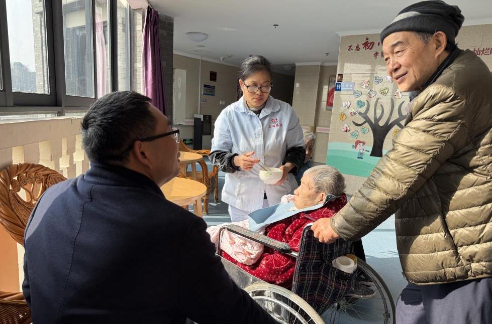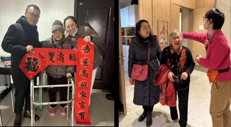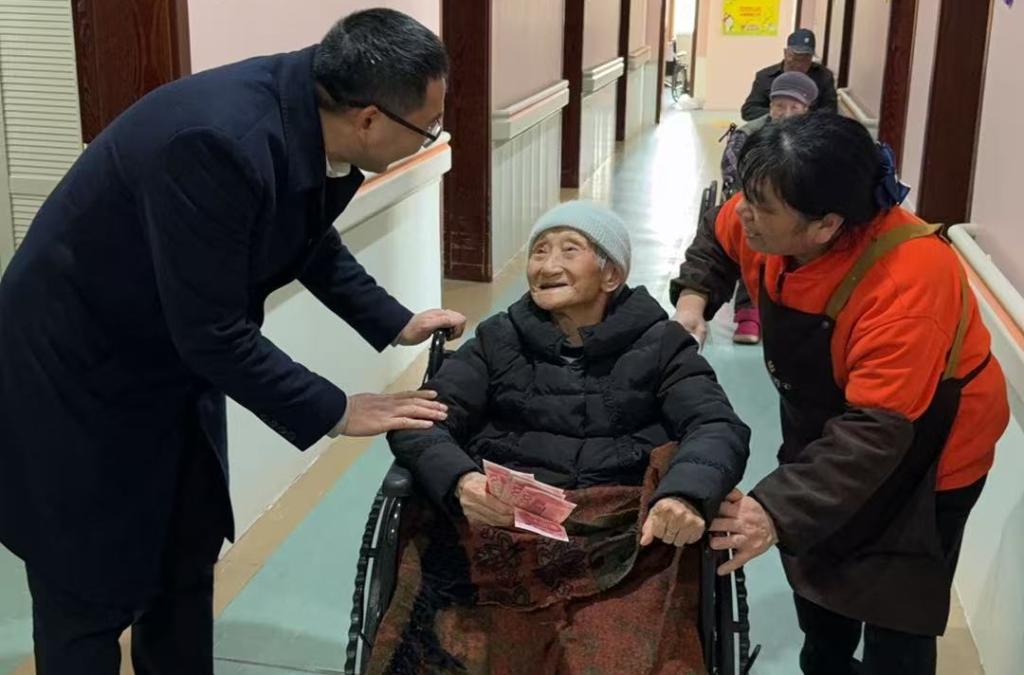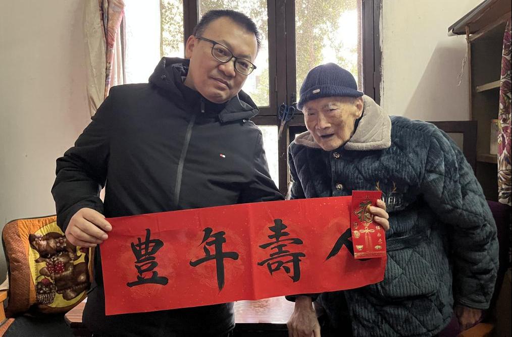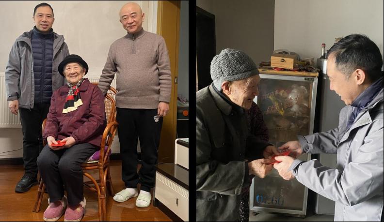 文淑兰老师(99岁) 伍雪辉院长助理慰问张兴民老师(92岁)