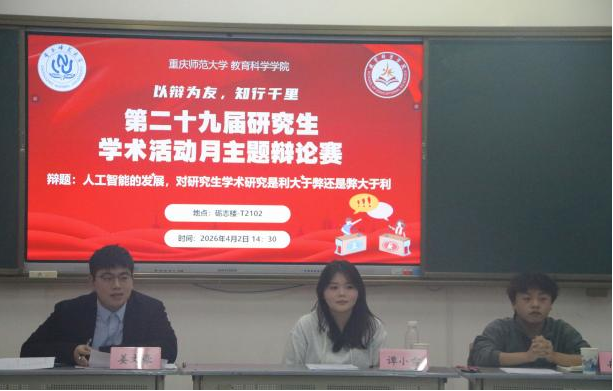 活动伊始,主持人详细介绍了比赛流程与评分规则。本次辩题聚焦时代热点和学术前沿,辩题直指“人工智能的发展对研究生学术研究利大于弊还是弊大于利”。赛场上,正反双方在立论、攻辩与自由辩论环节中层层推进、交锋不断,展现出扎实的知识储备与敏捷的临场反应。