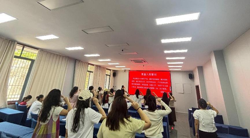 支部书记肖颖同志为毕业生党员们带来了一堂深刻的离校教育课。她带领全体与会党员重温入党誓词,在庄严的宣誓声中,进一步筑牢毕业生党员们的理想信念根基。肖颖同志强调,“无论身处何地,都要严格遵守党的纪律,时刻保持党员的先进性和纯洁性,以党员标准严格要求自身,做到廉洁奉公、敬业奉献”。