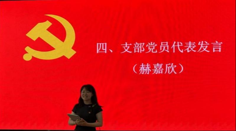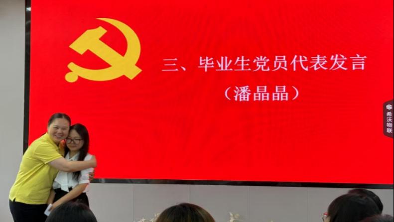 潘晶晶代表毕业生党员同志感谢支部长期以来的精心培养,回顾了在支部学习和成长的点点滴滴。她表示,从入党积极分子、预备党员直至成长为正式党员的每一个阶段都饱含着支部无微不至的关怀和指导。她庄严承诺,将永远铭记组织这份“雪中送炭”的关怀,在未来的学习和工作中持续发挥好党员的先锋模范作用,不负支部所托。